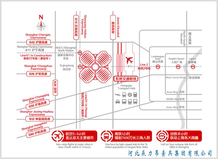 上海***會展中心位于上海市虹橋商務區核心區西部,與虹橋交通樞紐的直線距離僅 1.5公里,通過地鐵與虹橋高鐵站、虹橋機場緊密相連。周邊高速公路網絡四通八達,2小時內可到達長三角各重要城市,交通十分便利。